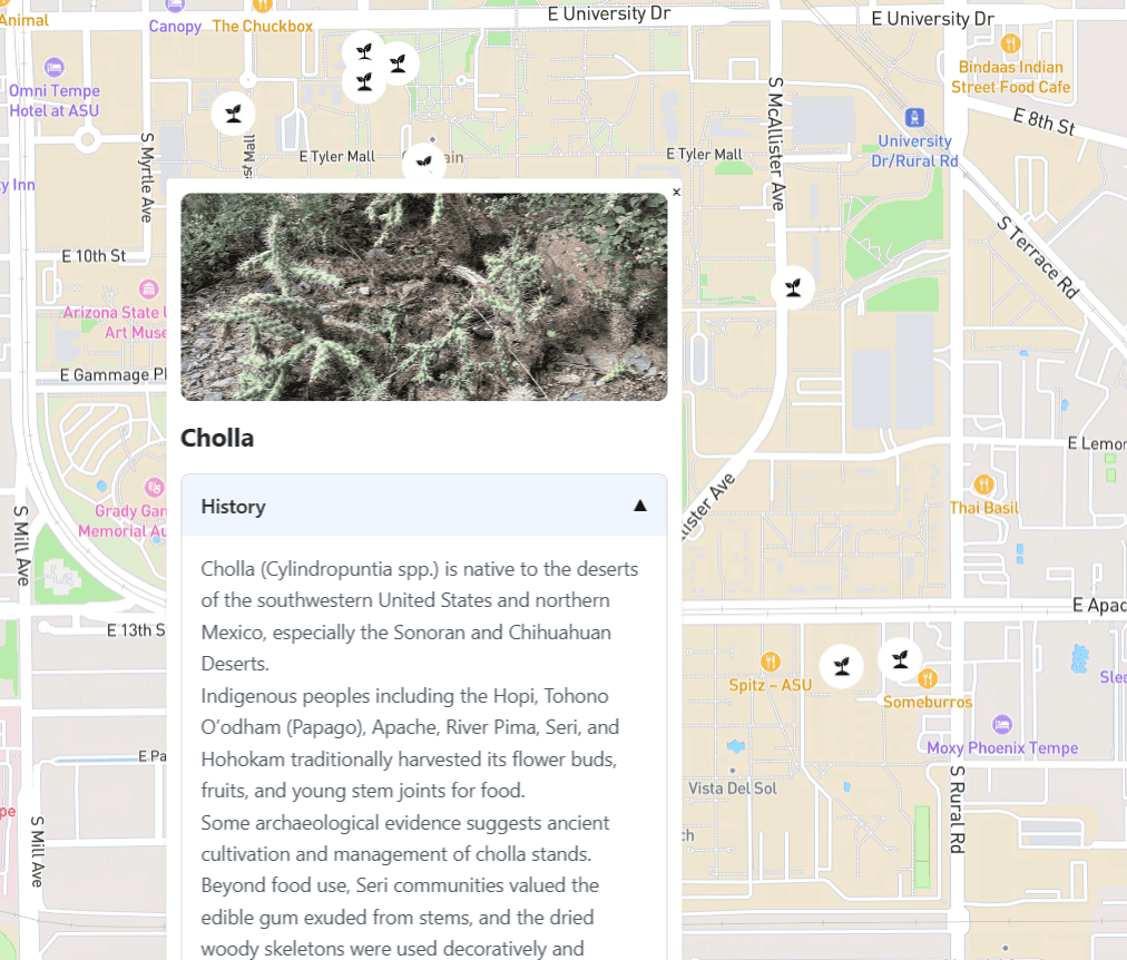 Initially focused on the ASU Tempe campus and surrounding areas, the platform is designed to scale across the broader Phoenix metropolitan region. Many existing foraging databases rely heavily on community-sourced contributions, which can introduce inconsistencies or outdated information. Forager addresses this gap by providing verified data on plant identification, toxicity, safety considerations, harvesting seasonality, and preparation methods. In addition, the platform incorporates historical context and documented uses to provide a more comprehensive understanding of each species.